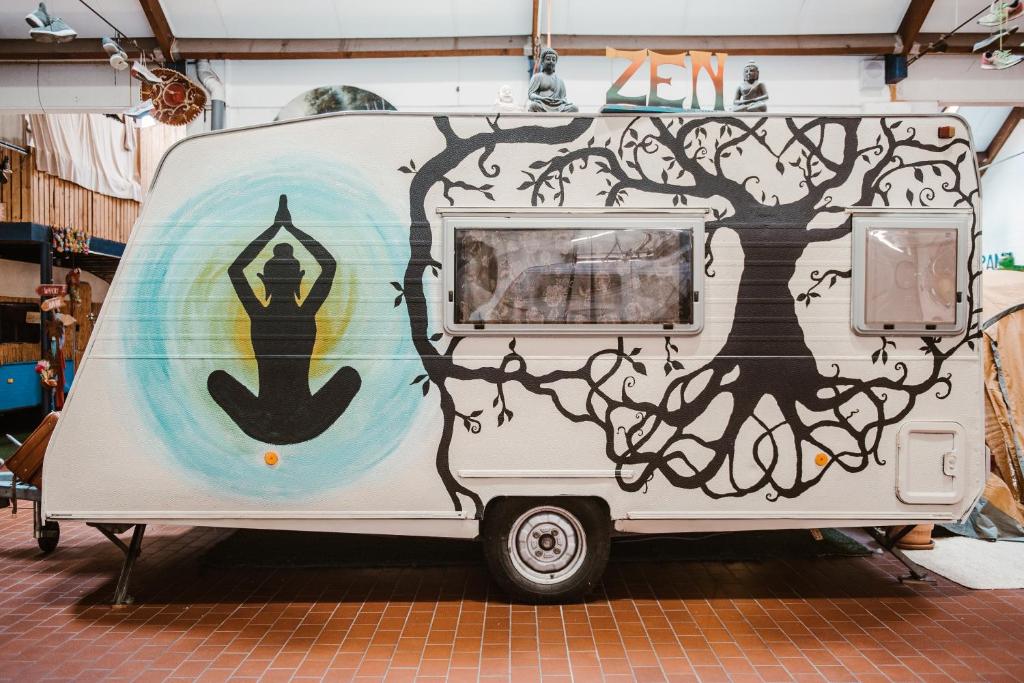 "It would be good if the jungle room (we stayed in) had a closed lockable door as it lacks a bit of privacy from other guests passing by as it is presently. This is not the case with any of the other caravans. We would also have loved to hire bikes, but there were no child seat or child bike options for our little ones, and as the next nearest bike hire was much closer to the town centre it made no sense to hire at all unfortunately."