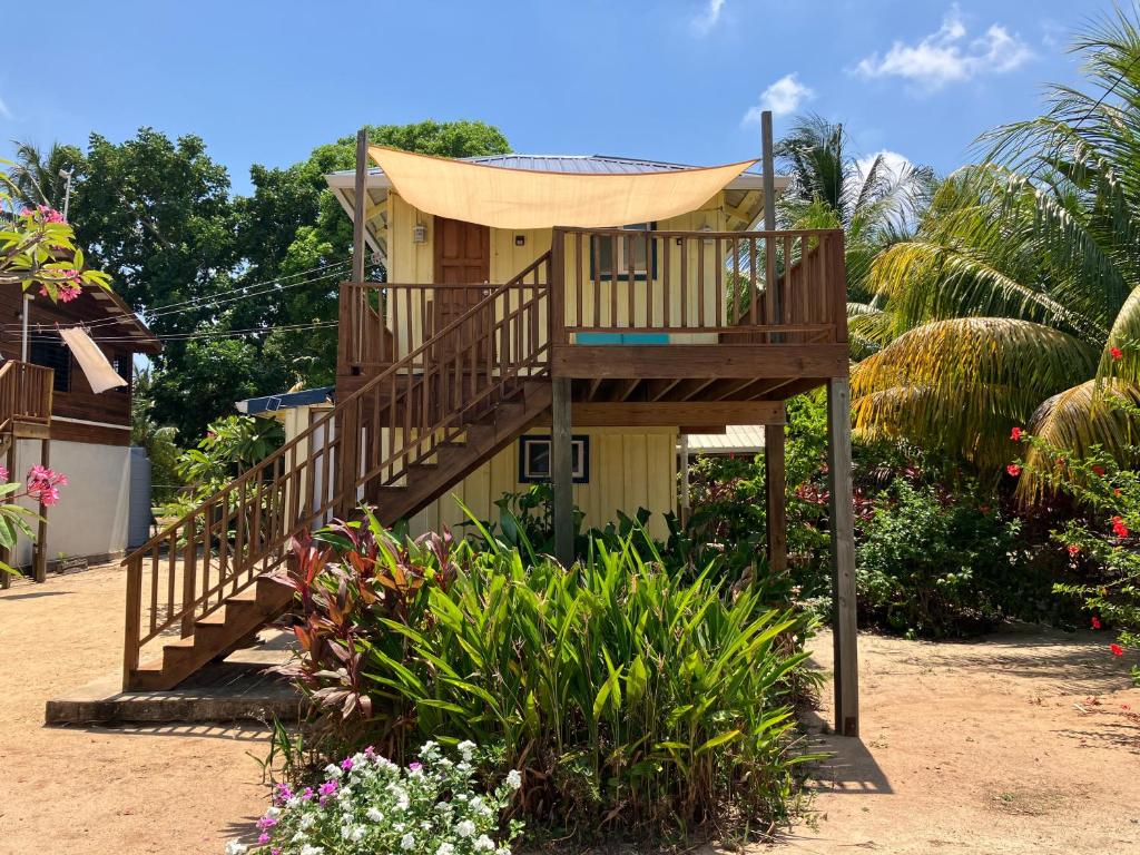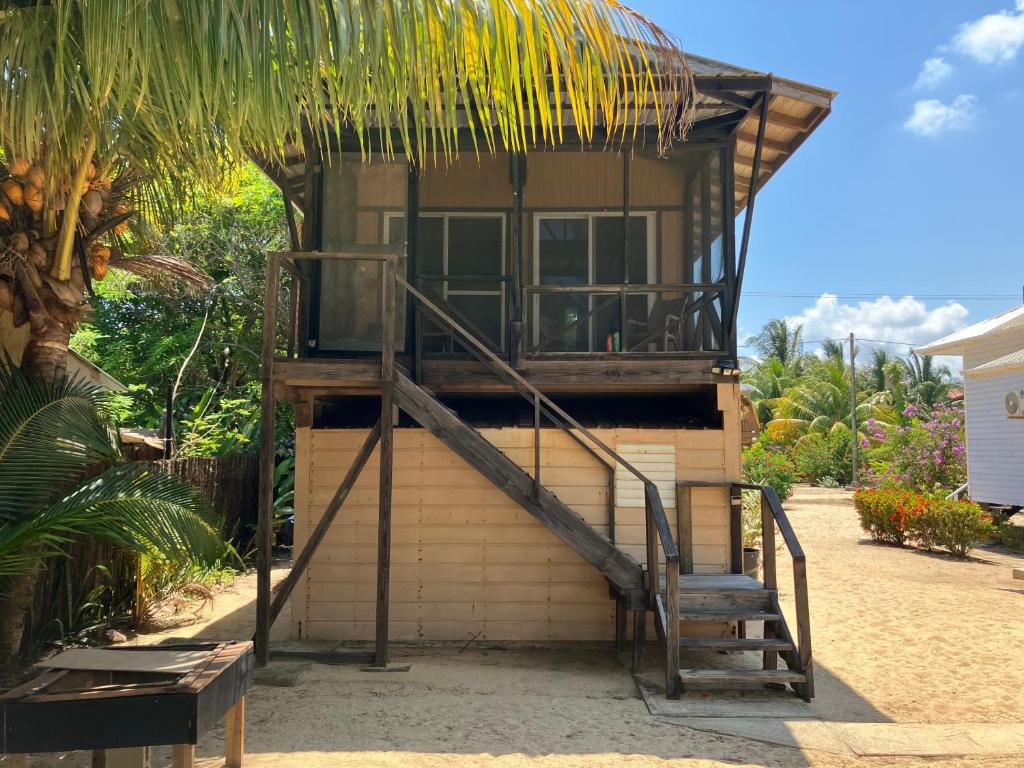 "The house was very cute and had is own beach. The beach was nice with chairs under the palms and way less sargassum than the beaches in Placencia (important for summer 2025), so our daughter was finally able to swim in the ocean! The beds were comfortable and the house and main bedroom had A/C. It was also super convenient to have washer/dryer access and on-site food and bar."