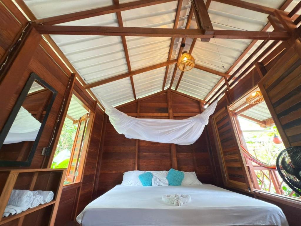 "La habitación en la planta superior y con vistas al océano es espectacular. Puedes descansar en sus hamacas de la terraza escuchando y viendo las olas, impagable. Está en el mismo pueblo y, siendo marzo la fecha de mi estancia, muy tranquilo. Gracias a Yeferson y familia por hacerme sentir como en casa."