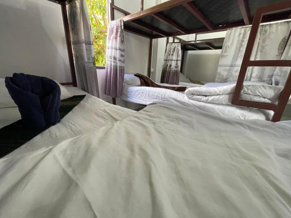 "Tengo bastante claro que está en el norte de Laos y se paga 4€ por la noche. Pero... sin embargo se podrían mejorar algunas cosas. Es más una recomendación que un punto negativo. El baño de la habitación es muy grande, pero realmente no se puede usar y casi nadie lo usaba. La manguera de la ducha es demasiado corta y tendría que estar al otro lado. El grifo está medio suelto, se podría pegarlo. Las puertas chillan, con un poco de aceite se arreglan. Alguna mesita o tabla en la habitación al lado de la cama estaría guay. Son cositas pequeñas que harían una gran diferencia. Ahora sí lo negativo: Las camas son muy incómodas. La "música" del chico me molestó bastante. En un entorno así yo no quiero escuchar medio techno. Lo siento."