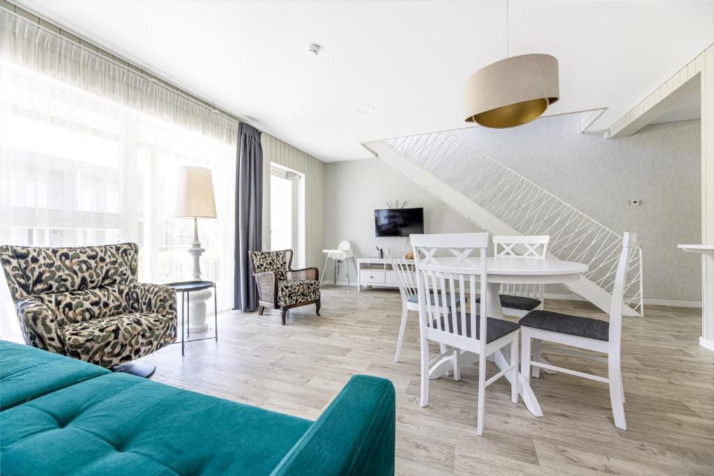 "Playground for children well equipped. we had apartment in first line from the road and it was relatively quiet. Airport is in short distance but for me it was not a problem (limited noise) as I live close to bigger airport. Two or three airplanes noticed per day. Good service at reception desk. Apartment with washing machine and dishwasher prepared with chemical tabs and washing liquid what was great advantage - big plus. Grill outside. Really nice spot."