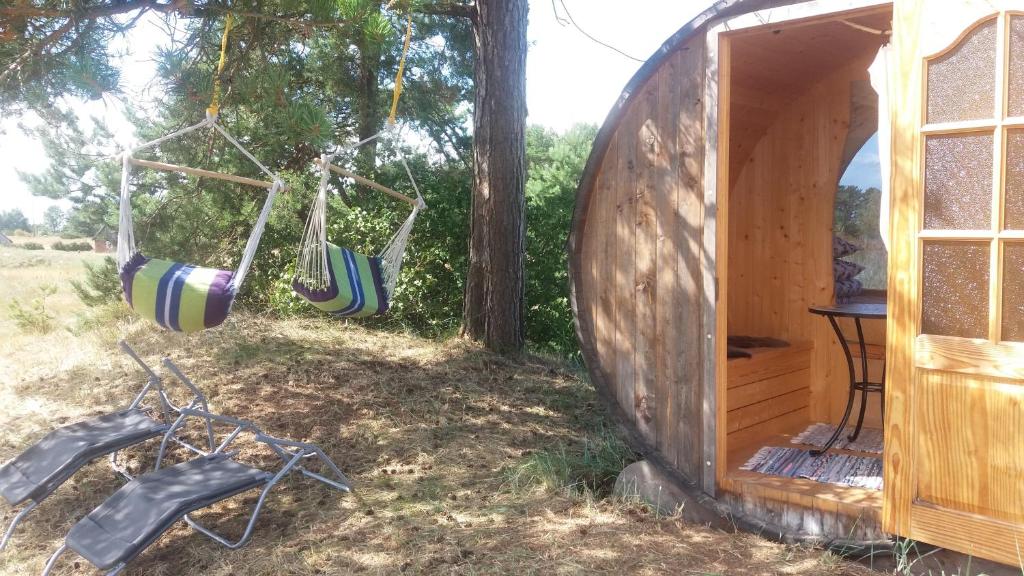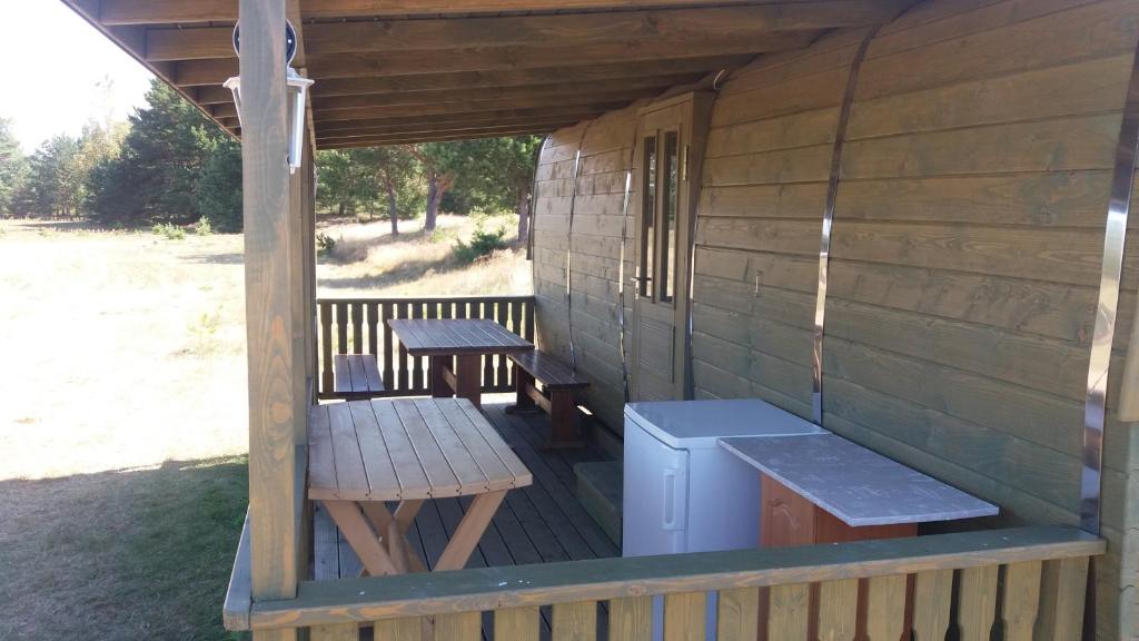 "The place is great if you want a peaceful stay, I really enjoyed the fields around and that there is enough space between houses. The little house for 2 people is so idyllic under the pine tree💛 On the other hand bigger ones are really comfortable for longer stay/ travelling with a family. Our host was really helpful and caring."