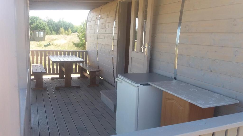 "Yra viskas kas reikalinga: puiki vieta miegui, terasa, vanduo,elektra viduje ir lauke,šaldytuvas.Vieta labai rami ir romantiška. Kiek paėjus yra tualetai dušai , kaip namuose, ir virtuvėlė.Prie jūros patogu viską susimetus nuvažiuoti mašina.Trunka 5 minutes.Yra aikštelė prie pat jūros.Šeimininkai labai dėmesingi."